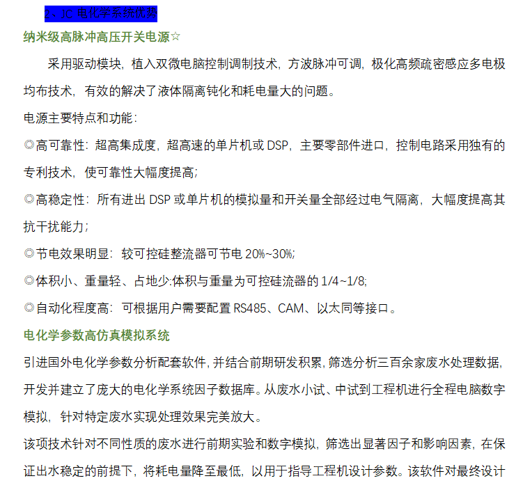 經(jīng)濟節(jié)能, 電耗為傳統(tǒng)電化學的1/3,極板壽命可達2年;